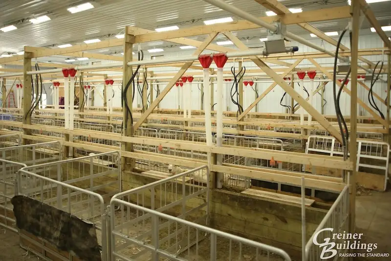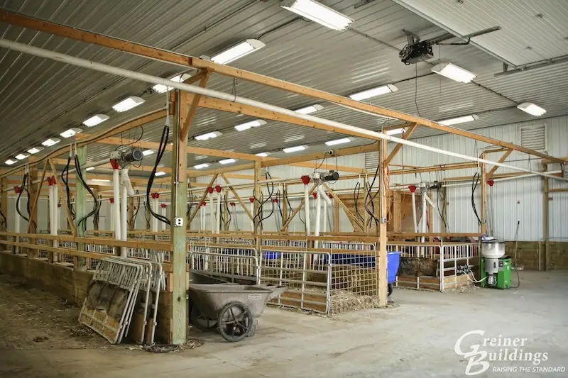 Post-frame advantage: Post-frame construction offered a large building with tall exterior walls for oversized doors and equipment, well-ventilated rooms for livestock, and large clear span.