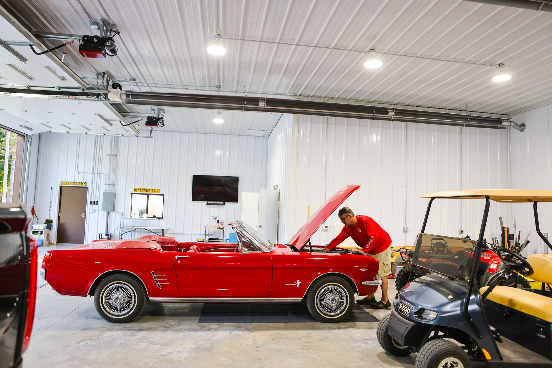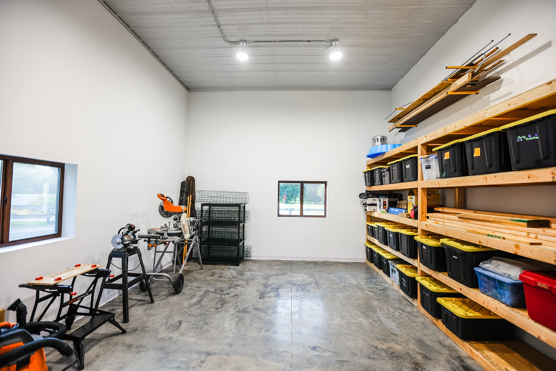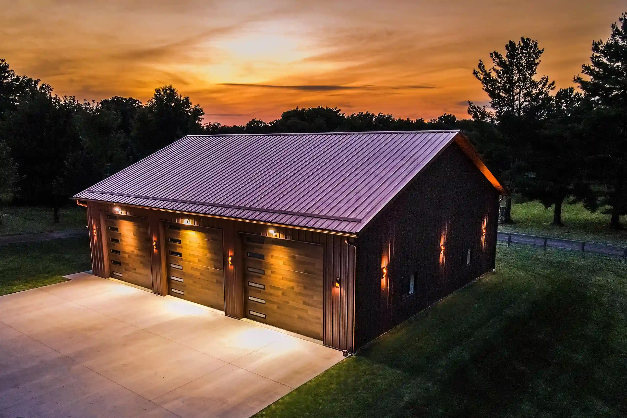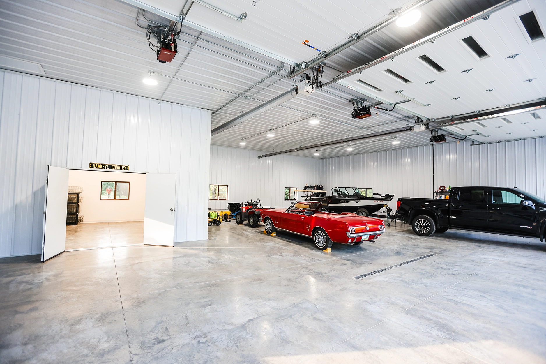 This 48’ x 56’ x 14’ lined and insulated shop garage pairs Chestnut steel siding with a striking Penny metal roof for a look that’s both classic and distinctive. Built by Greiner Buildings, this custom post-frame building offers a fully finished, temperature-controlled interior—perfect for boat storage, working on a classic Mustang, or entertaining friends and family year-round. An additional storage room provides practical space for tools and seasonal gear, while the clean, open layout makes this residential shop both beautiful and functional. Penny Lane combines craftsmanship, comfort, and versatility in one durable custom metal building designed to last for generations