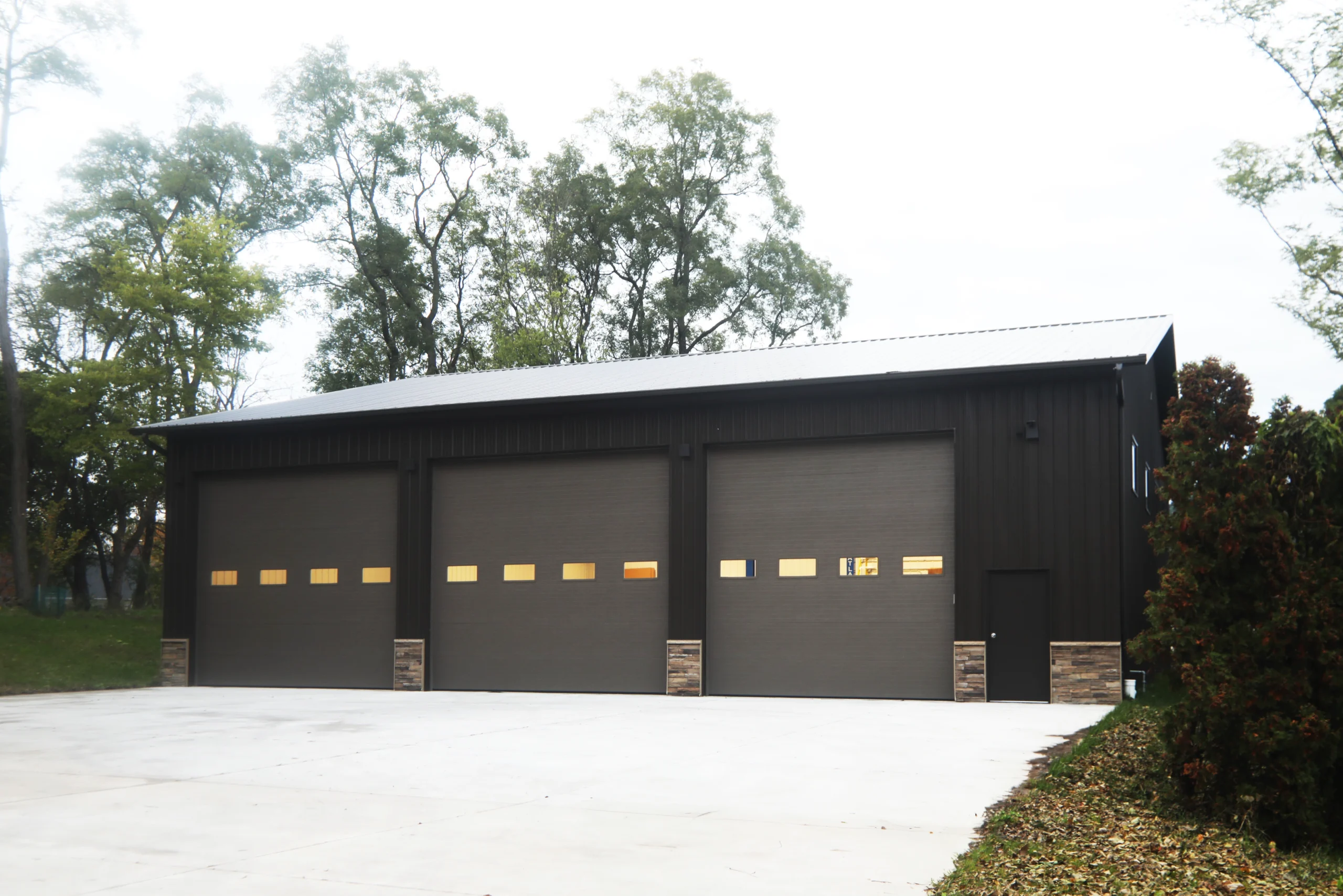 This 60’ x 60’ x 16’ garage and hobby shop makes a statement with its rich CS Kynar Bronze steel exterior, accented by Versetta Stone wainscoting in Plum Creek for a bold, custom look. Inside, the lined and insulated design provides year-round temperature control, making it ideal for working on and showcasing collectible cars. Multiple access points and an expansive, open interior create flexibility for mechanical work, serious storage, or simply relaxing with friends while grilling and talking shop. A high-performance garage built to deliver beauty, function, and lasting value.