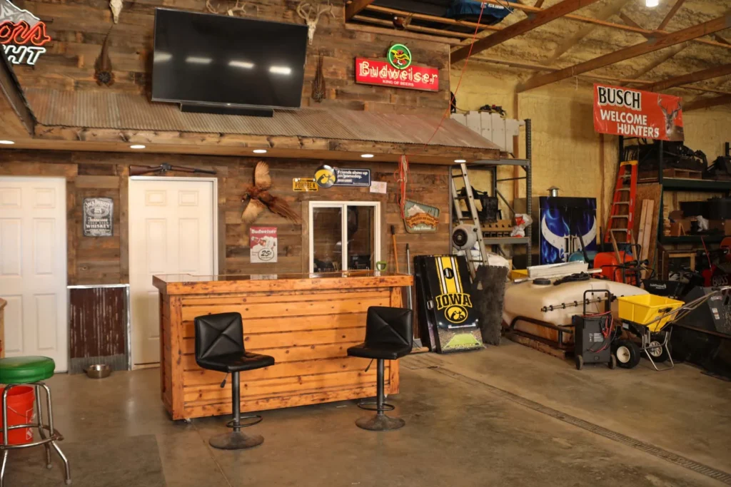 Even if you don’t put a full-on bar inside your pole barn, you’ll probably want a fridge to keep drinks and other snacks cool and close. A sink will come in handy for cleaning your latest fishing catch, washing dishes after a family gathering, or simply getting some grease off your hands.