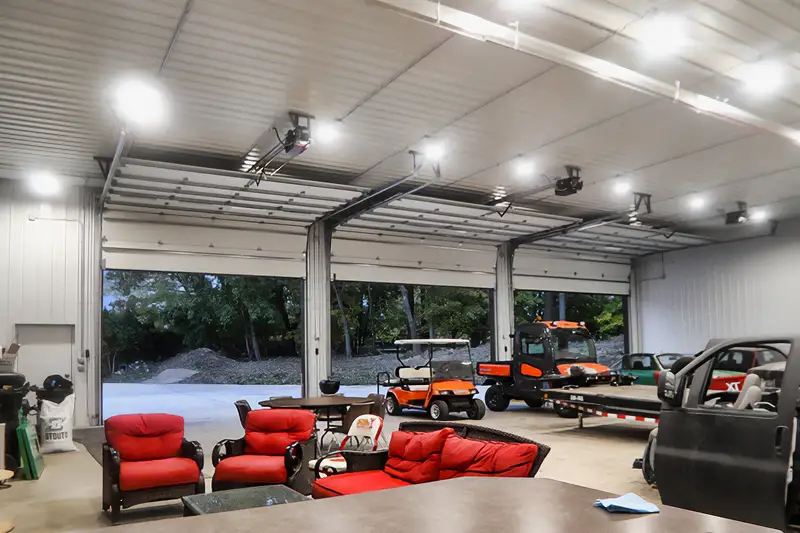 Every garage we build is fully lined and insulated to provide reliable, year-round protection. From winter storms to humid Iowa and Illinois summers, your vehicles and equipment stay dry, secure, and at a stable temperature. Whether you’re storing valuable tools in Iowa City or protecting seasonal vehicles near Springfield, IL, our climate-controlled post-frame garages deliver dependable performance in every season.