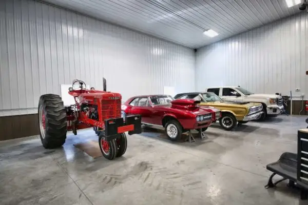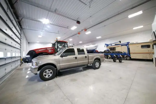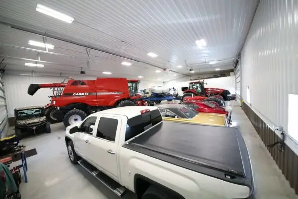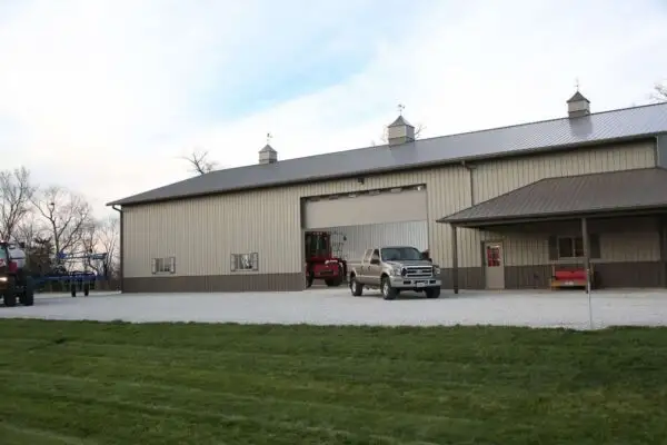 This 60’ x 104’ lined and insulated shop is located in the heart of Iowa. Our client uses this temperature controlled pole barn storage building year-round. From collectible cars to farming equipment to RV, this 60’ x 104’ building perfectly solves this client’s storage needs. Featuring a 2’ overhang, cupulas, and a nicely sized wrap around porch, this building has it all!